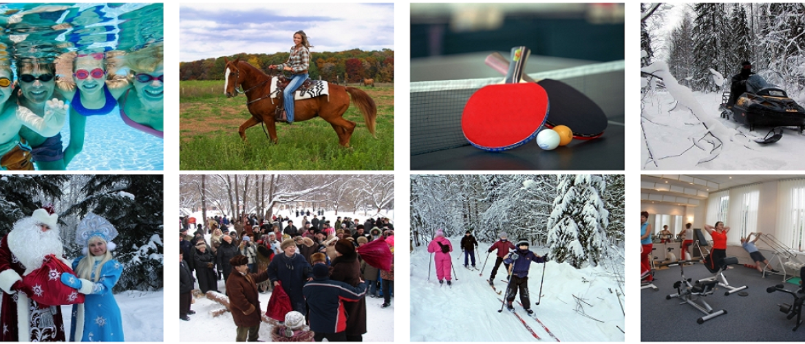 - спортивные площадки (футбольное поле, волейбольное поле, теннисная площадка, теннисный стол (на улице), каток (зимой), площадка для бадминтона